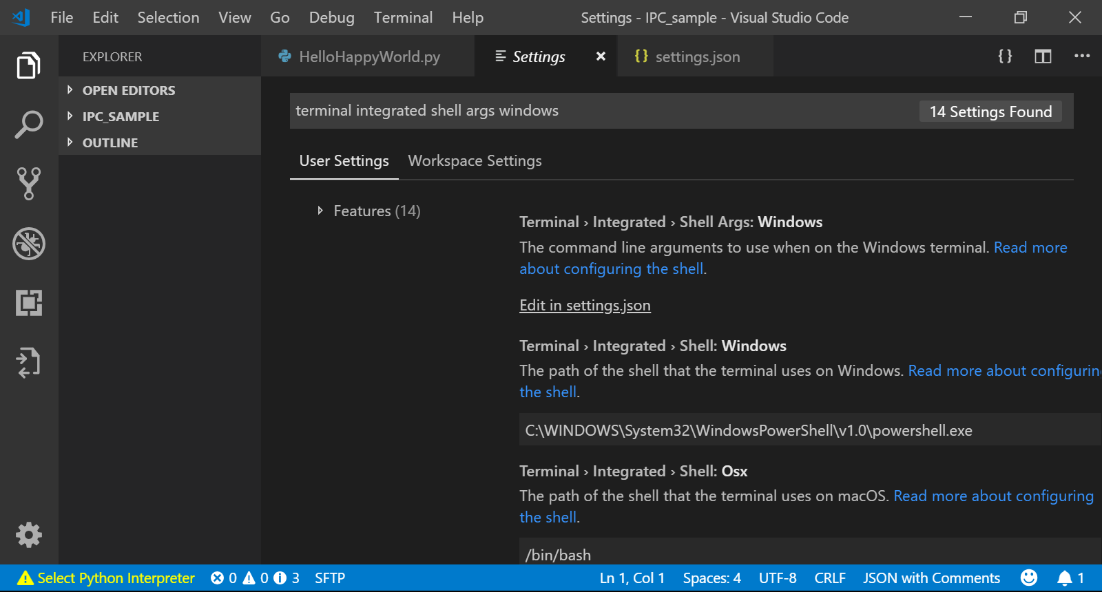 “terminal.integrated.shell.windows”: “C:\\Windows\\system32\\cmd.exe”,